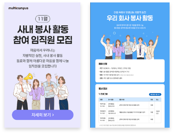 멀티캠퍼스는 2025년 하반기 부터 지역사회 발전에 기여하기 위해, 사업장 소재지인 강남구청과 연계하여 다양한 봉사활동 프로그램을 임직원의 자발적인 참여를 유도하여 추진하고 있으며, 2026년 부터는 전 임직원의 30%이상이 1회 이상 봉사활동을 참여하는 것을 목표하고 있습니다.