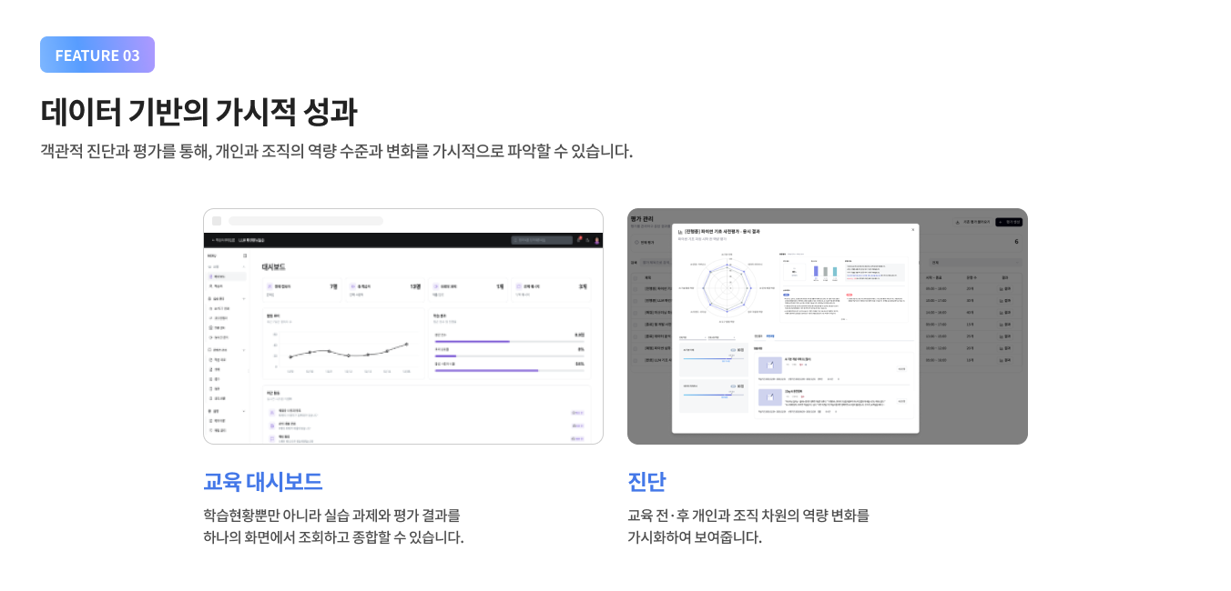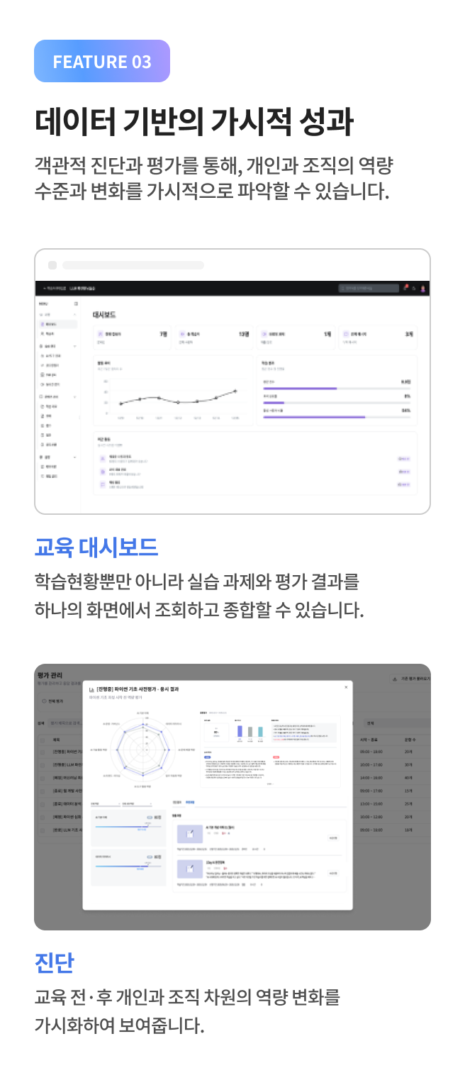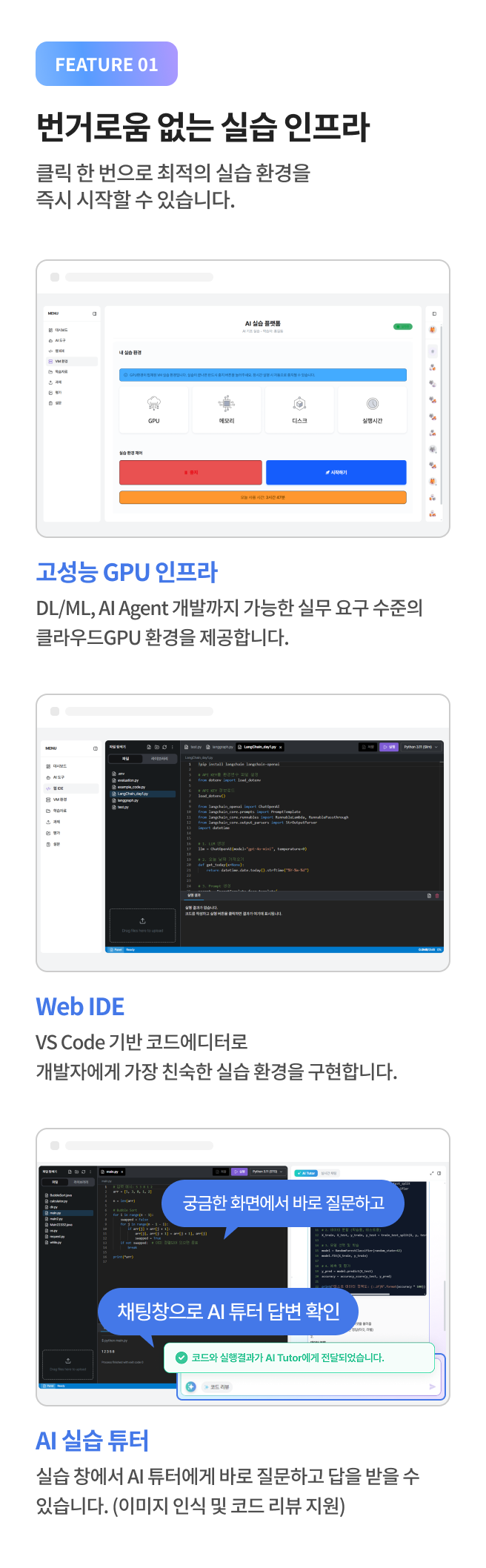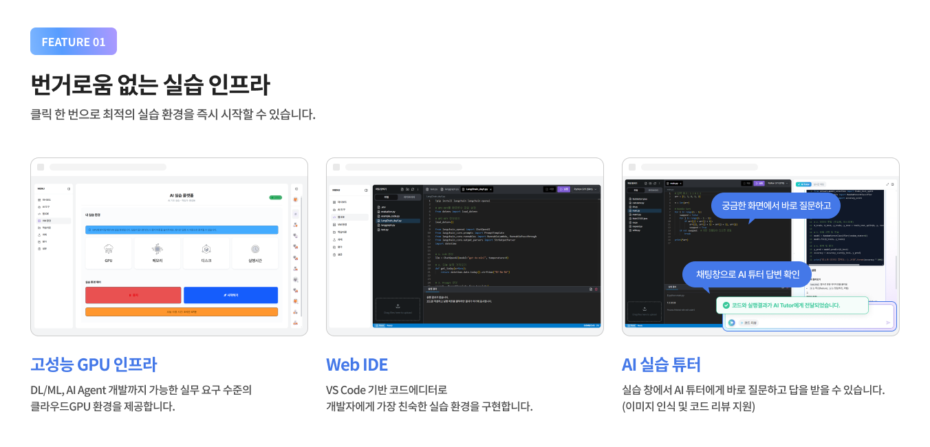실무와 동일한 환경 속 AI 경험과 구현이 가능하도록 설계된 AI기반 실습 플랫폼 입니다.