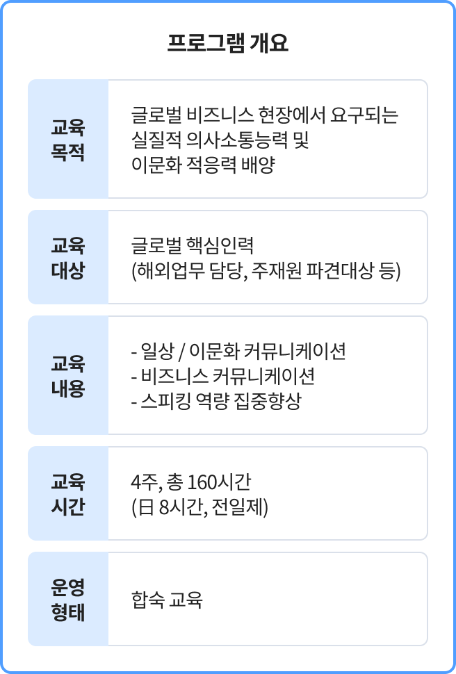 해외 주재(파견) 예정자, 글로벌 실무 담당자, 핵심 리더 등 어학 향상이 필요한 임직원