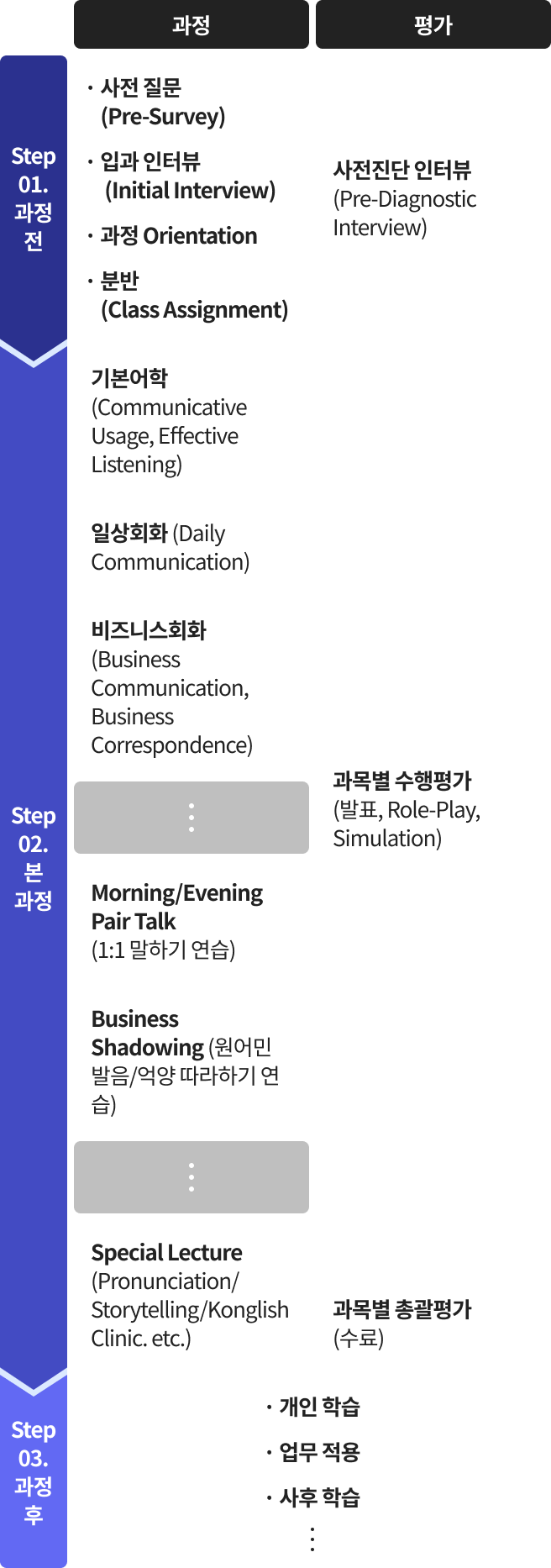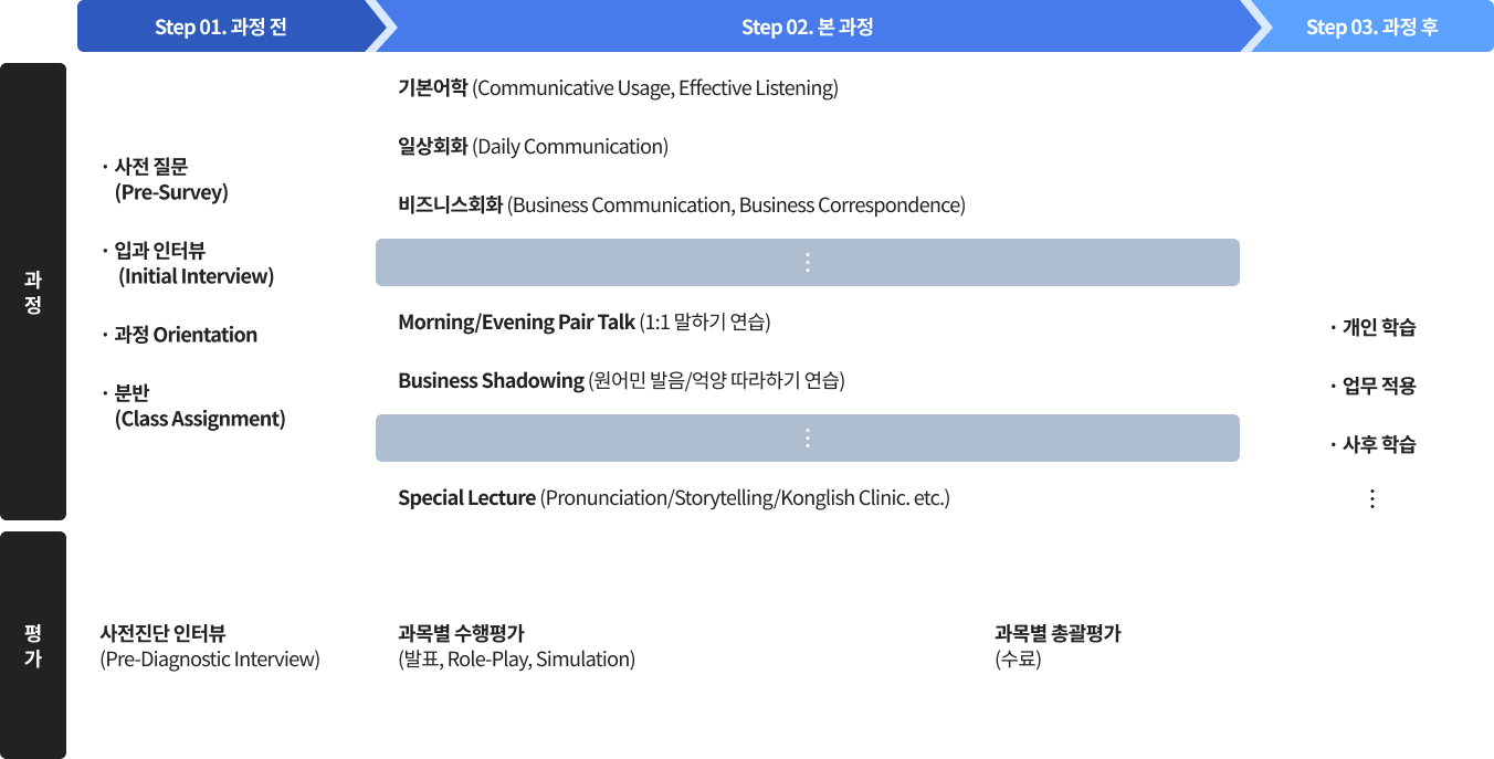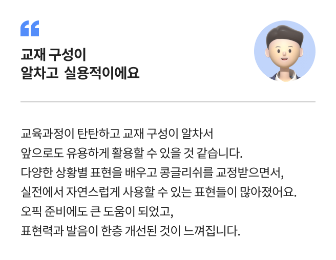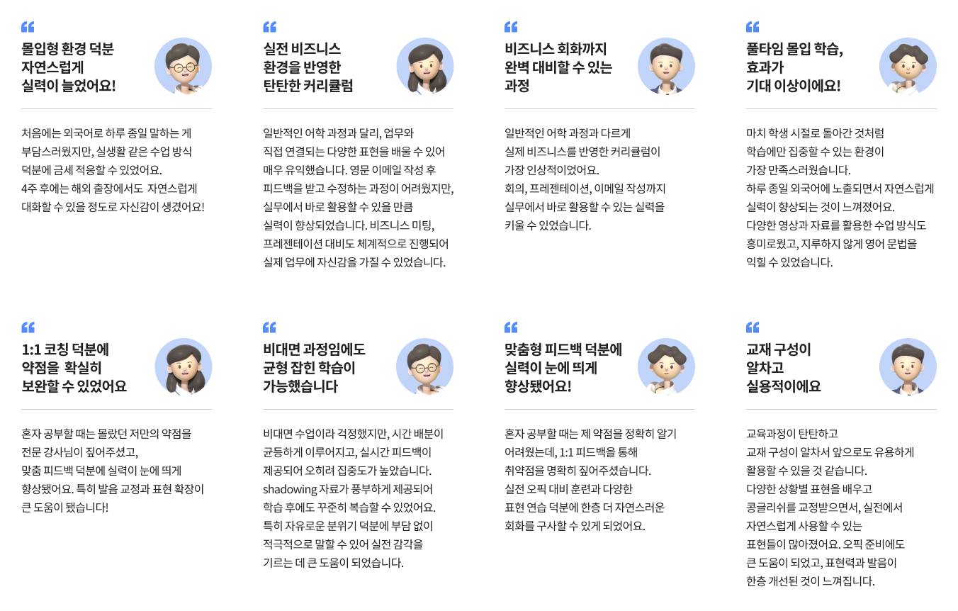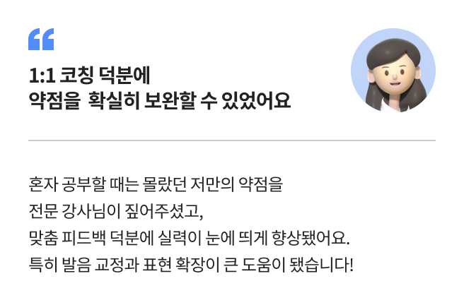 기본 어학, 실전 회화, 비즈니스 회화, 1:1 개별 코칭
