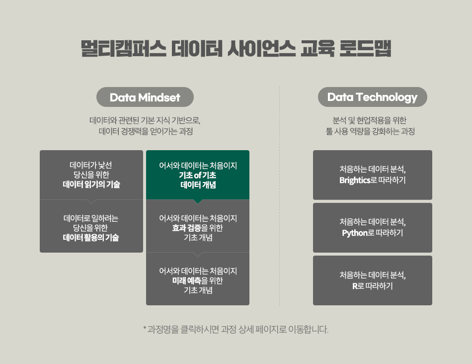 본 과정은 학문적 이해보다는 딱딱하지 않고 재미있게 설명하여 심도있는 데이터 분석으로 학습이 이어지도록 하는 것을 목표로 합니다.