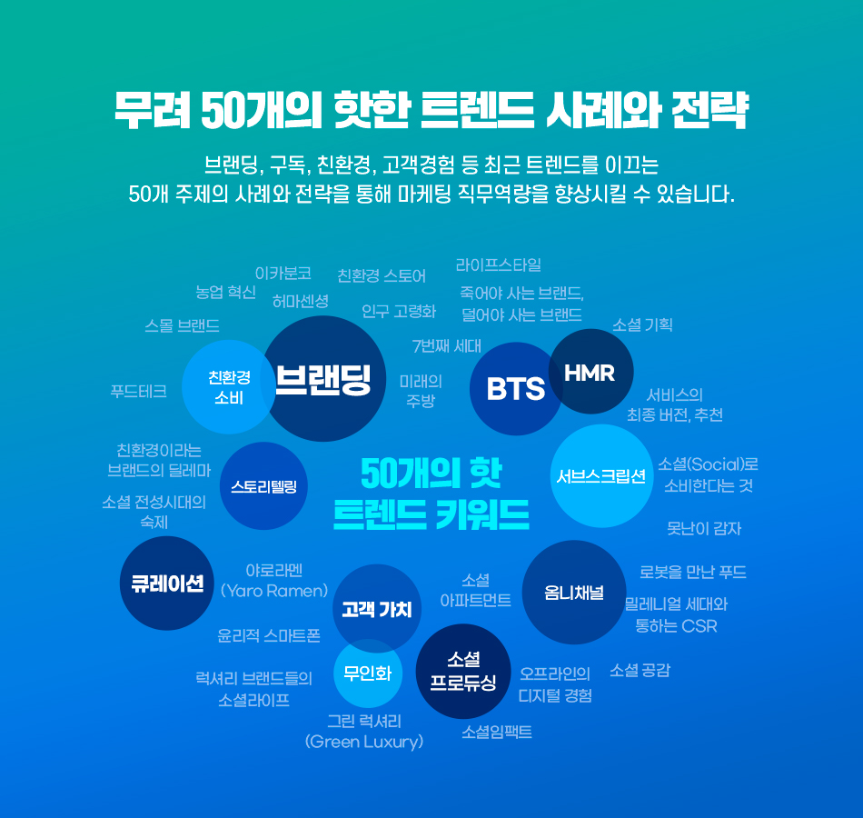 - 마케팅과 관련된 다양한 주제의 트렌드를 파악하여 실무에 적용할 수 있다.